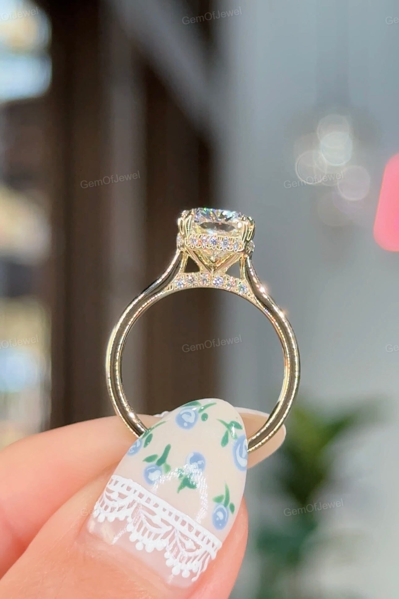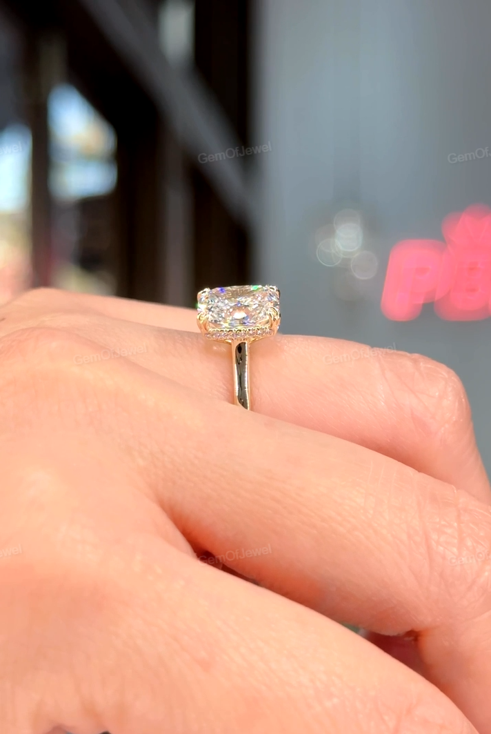 Cushion Moissanite Diamond Engagement Ring with Hidden Halo And Double Claw Prong Ring With Round Moissanite Ring, 3CT Diamond Ring