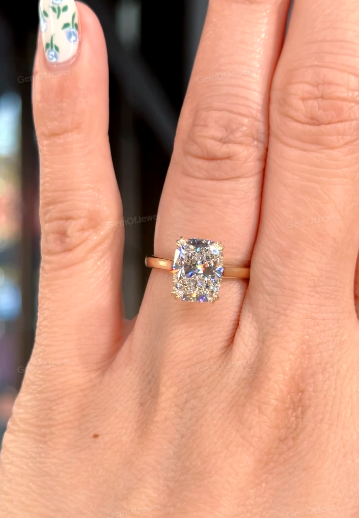 3CT Cushion Moissanite Diamond Ring, Double Claw Prong Ring, Solitaire Diamond Engagement Ring, Moissanite Diamond Ring With Round Diamond Ring