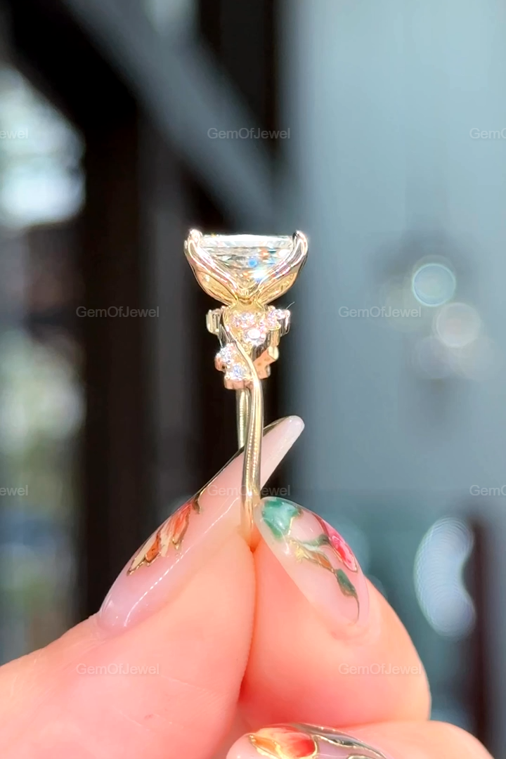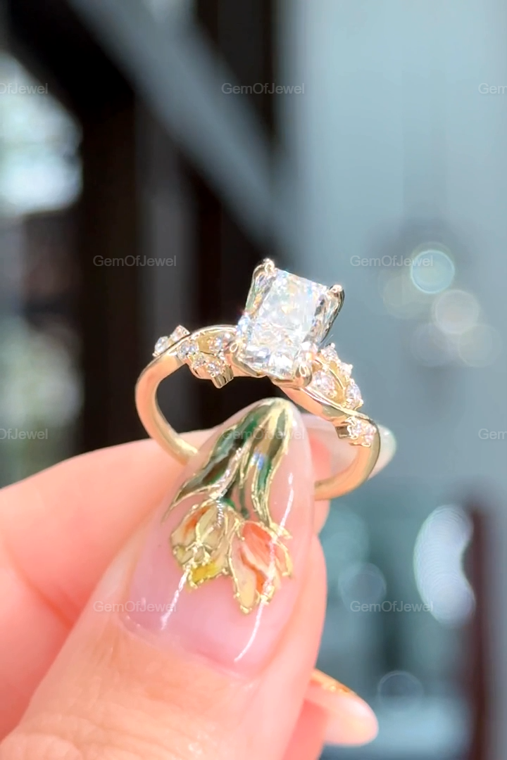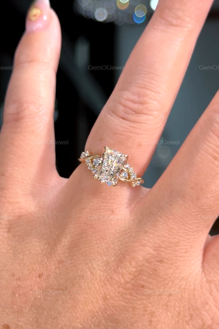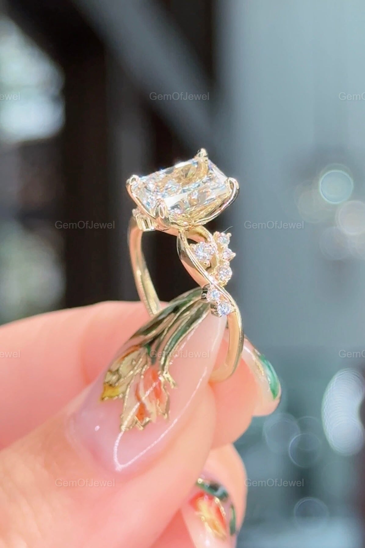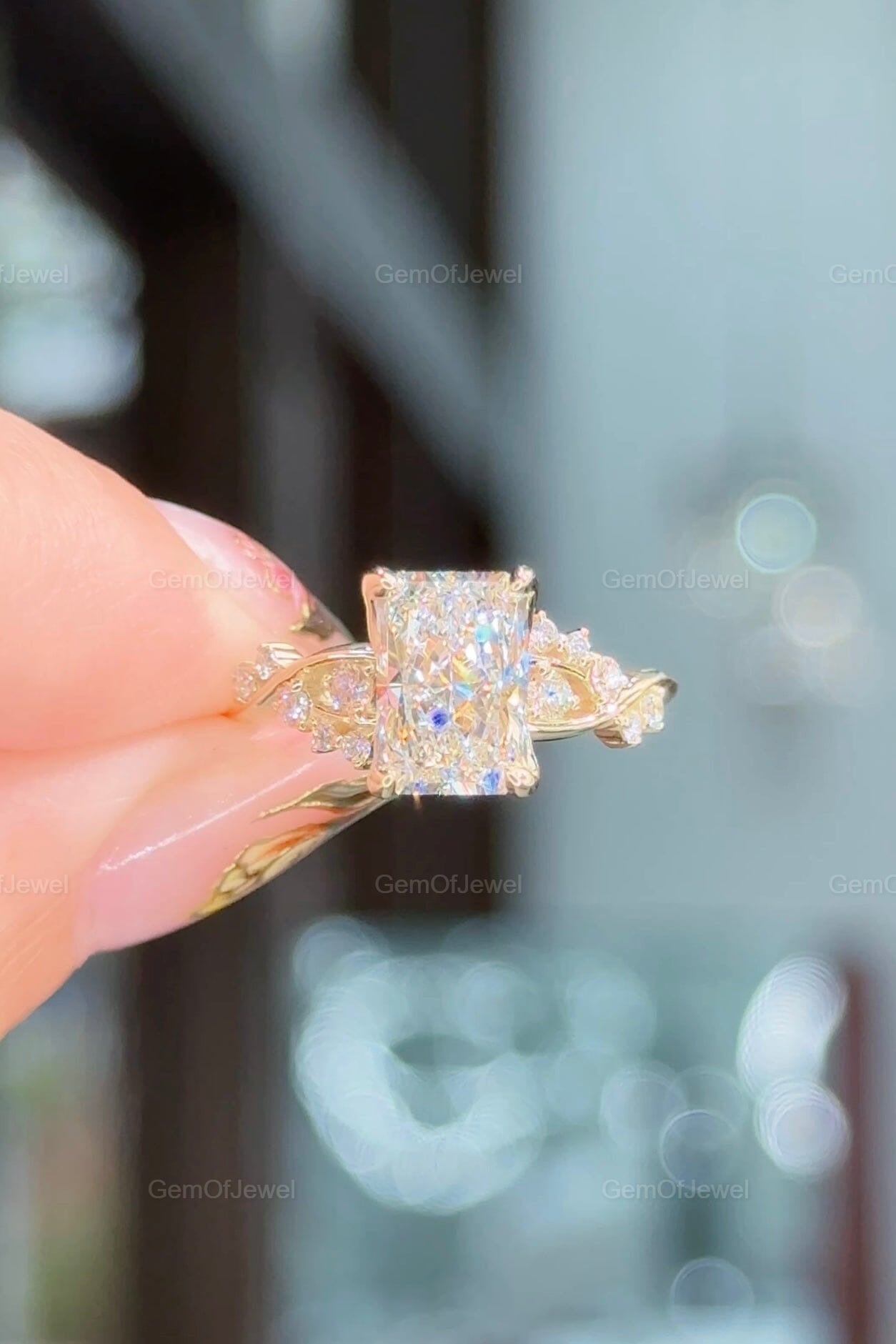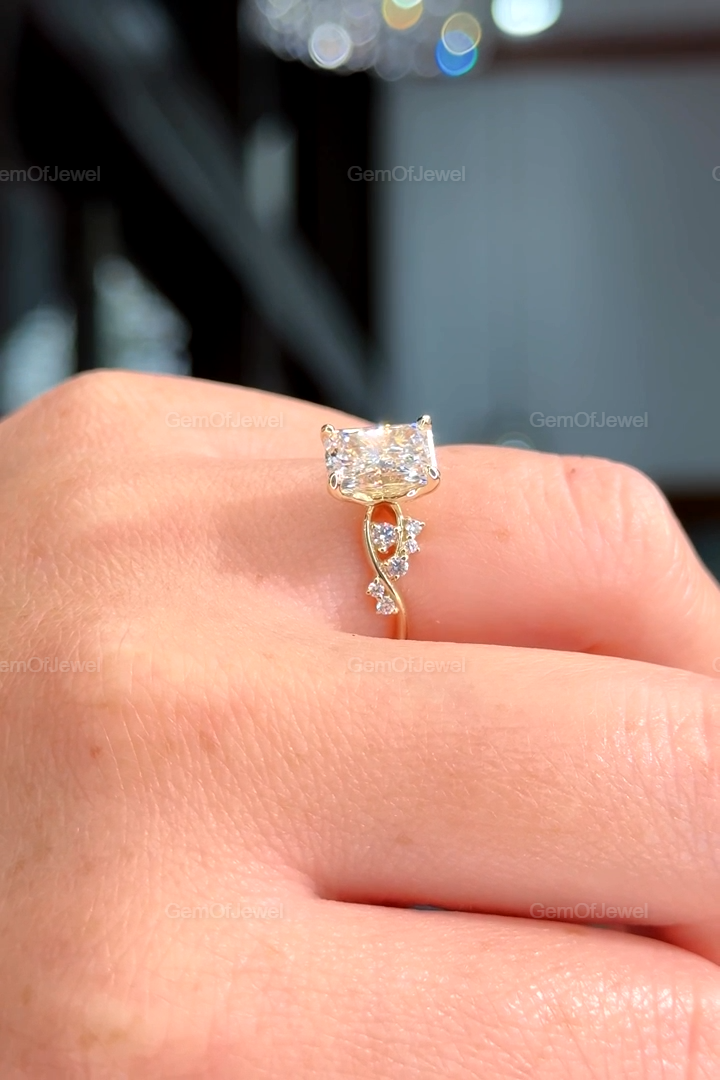 Radiant Moissanite Twisted Shank Ring, 1.80 Ct Radiant Cut Solitaire Moissanite Ring, Solitaire Split Shank Ring, Solid 14k Gold Bridal Ring, Radiant Twisted Shank Diamond Ring, Radiant Diamond Moissanite Ring, Round Diamond Ring, 14K Yellow Gold Moissanite Ring