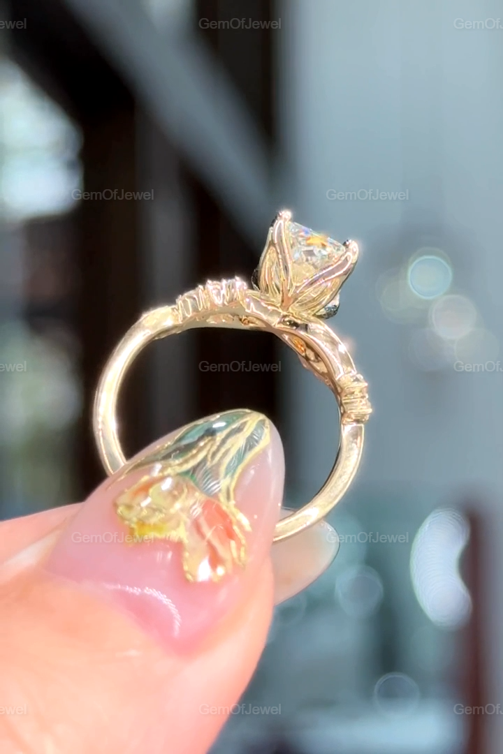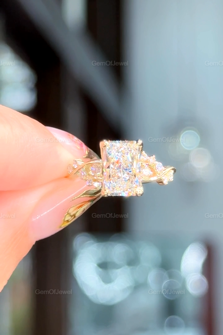 1.8CT Radiant Cut Solitaire Moissanite Ring, Radiant Moissanite Twisted Shank Ring, Solitaire Split Shank Ring, Solid 14k Gold Bridal Ring
