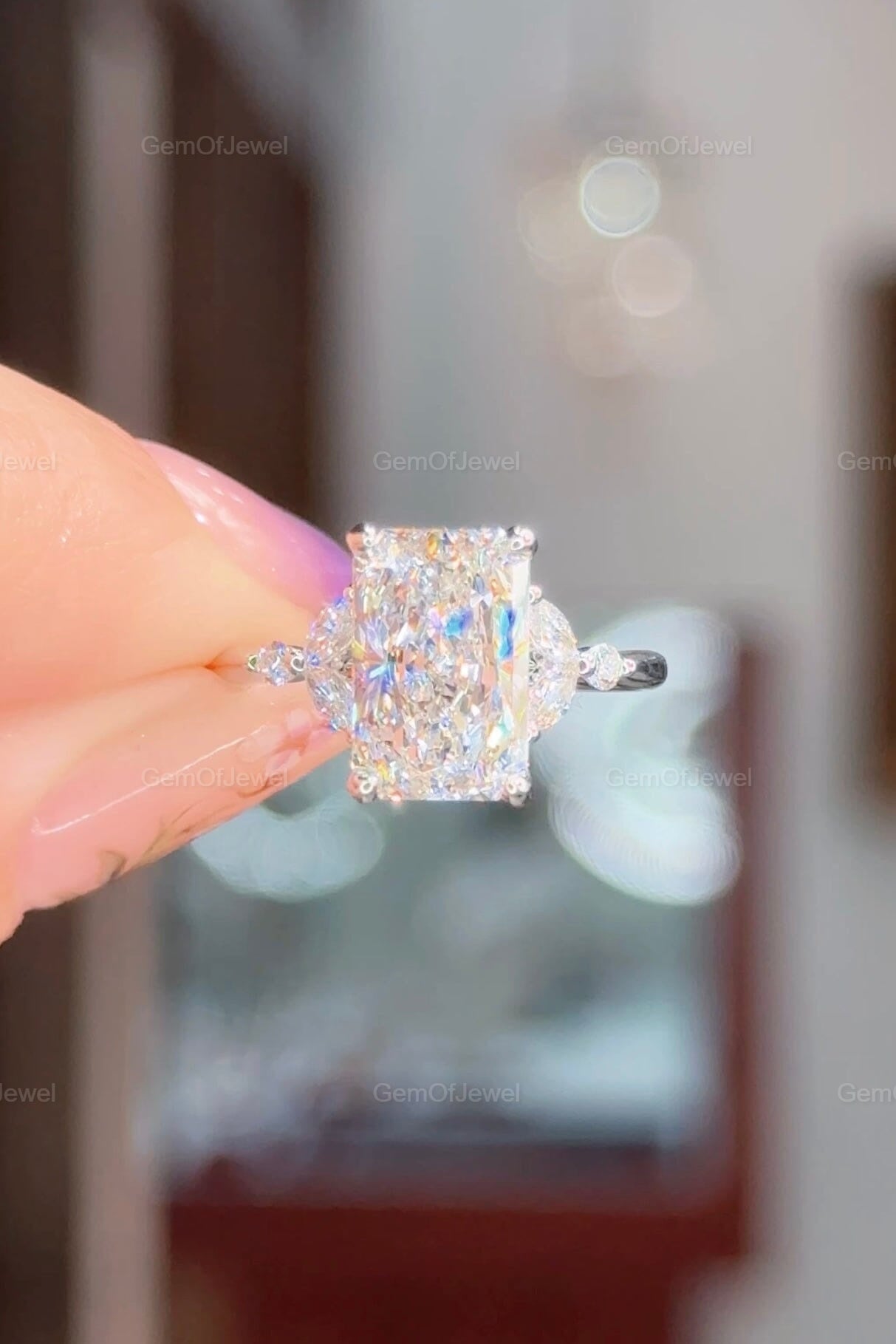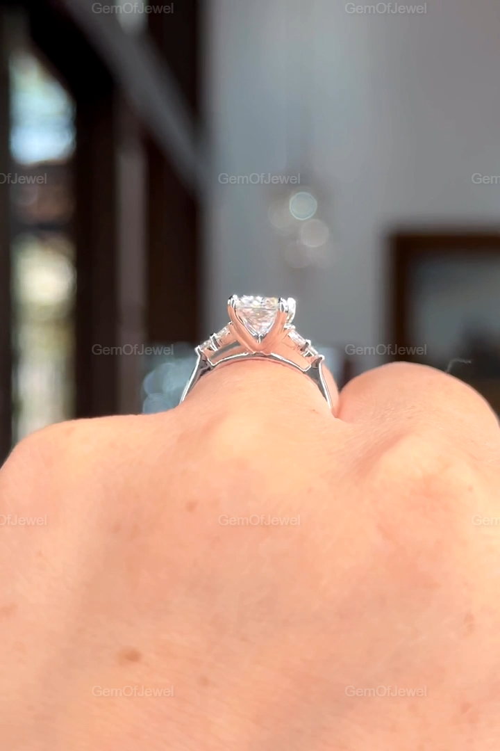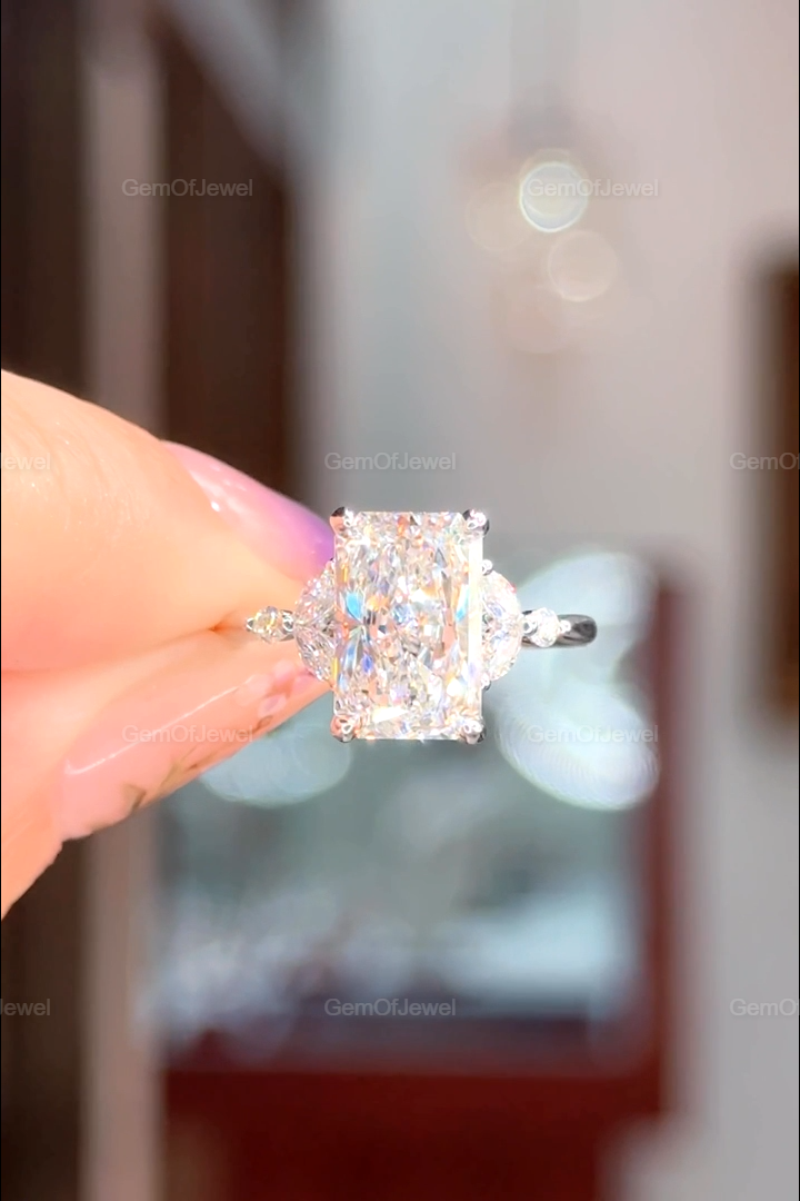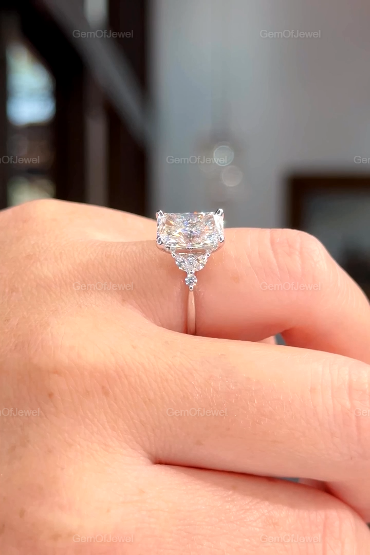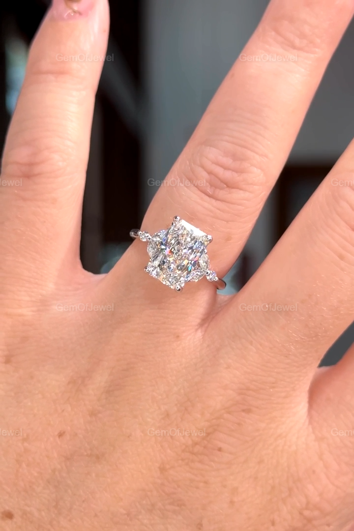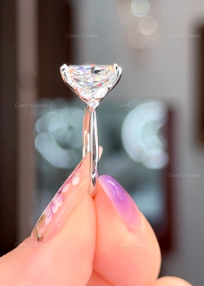 Radiant Cut Moissanite Ring, 2.5CT Radiant Cut Colorless Moissanite Engagement Ring, Marquise With Round Moissanite Diamond Anniversary Ring