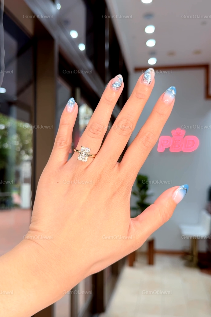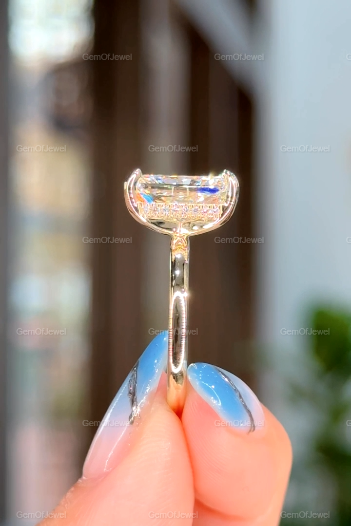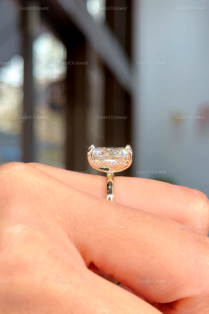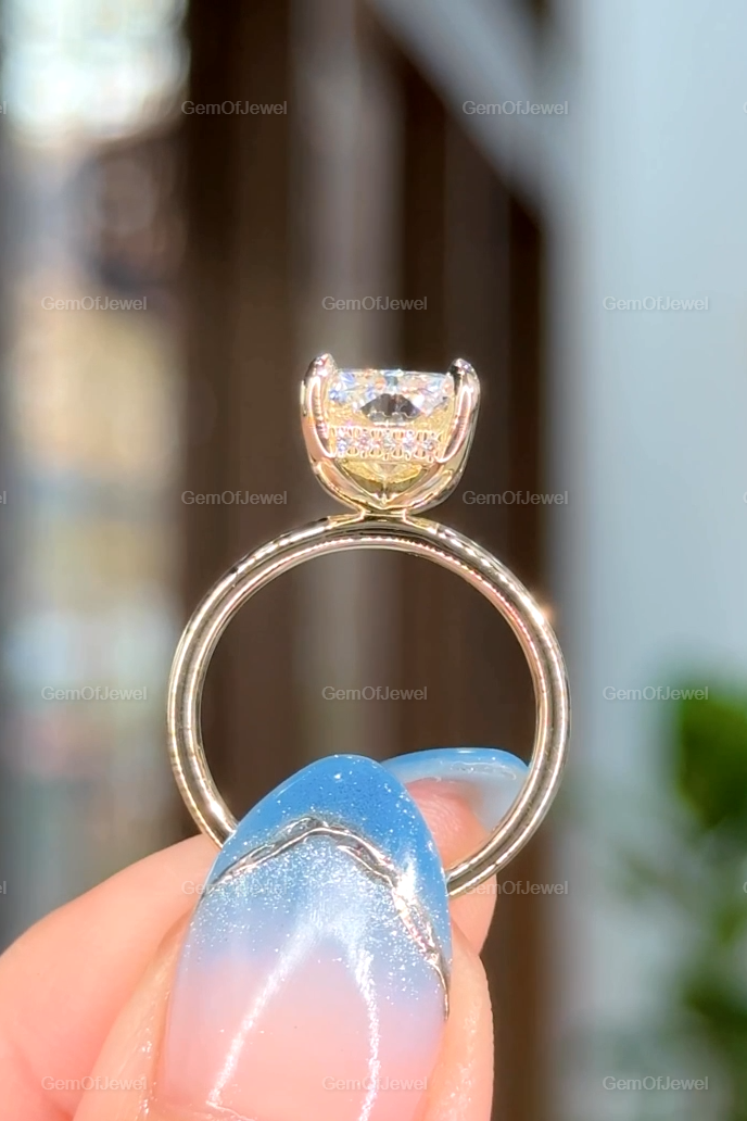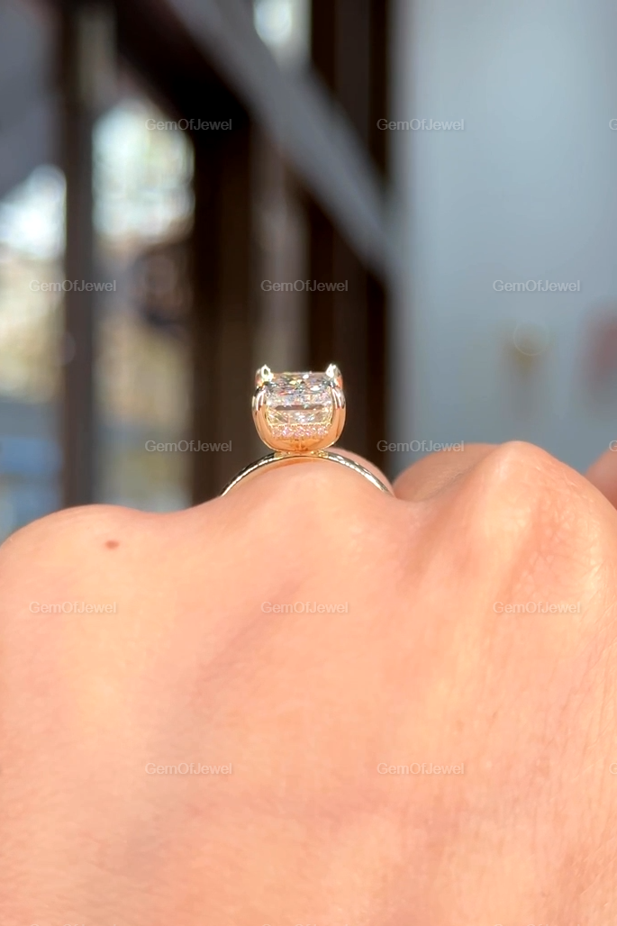 Hidden Halo Radiant Cut Solitaire Ring, 4 CT Radiant Cut Moissanite Diamond Ring, 14K Solid Yellow Gold Engagement Ring, Dainty Promise Ring