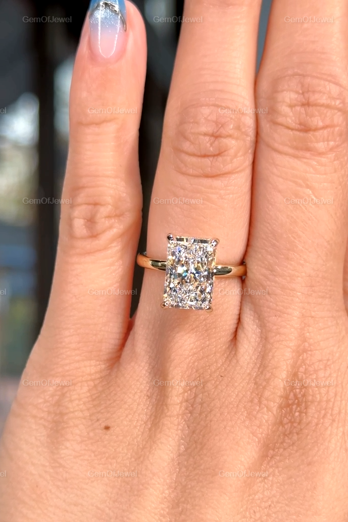 Hidden Halo Radiant Cut Solitaire Ring, 4 CT Radiant Cut Moissanite Diamond Ring, 14K Solid Yellow Gold Engagement Ring, Dainty Promise Ring, Radiant Moissanite Diamond Ring, Moissanite Diamond Ring, Solitaire Diamond Ring, Hidden Halo Moissanite Diamond Ring, Engagement Diamond Ring, Radiant Anniversary Ring, Radiant Solitaire Diamond Ring
